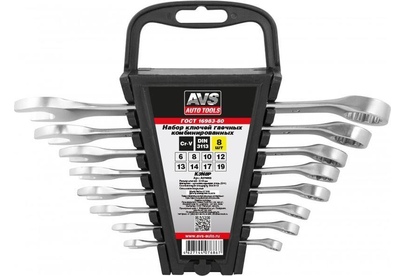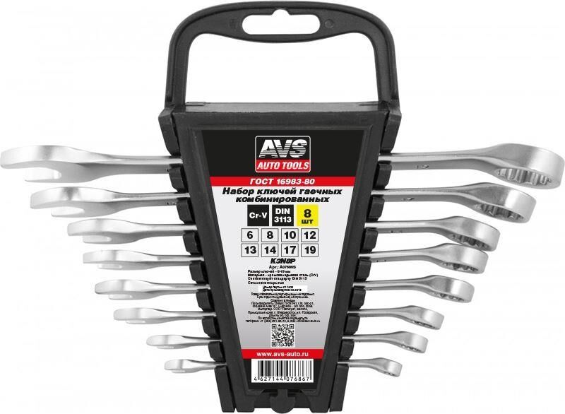 AVS TOOLS Набор ключей гаечных комбинированных на держателе (6-19 мм) (8 предметов) AVS K3N8P