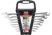 Комбинированные (рожково-накидные) ключи – самый распространённый и популярный тип гаечного ключа, сочетающий в конструкции рожковый и накидной профили. Использование двух одноразмерных профилей делает инструмент универсальным. Ключи изготовлены из легированной хромованадиевой стали в соответствии со стандартом DIN 3113 и отвечают требованиям ГОСТ 16983-80 Для вашего удобства мы собрали наиболее используемые размеры ключей в наборы. Прочный пластиковый держатель сделает хранение инструмента удобным и компактным. Размеры ключей: 6-8-10-12-13-14-17-19 мм Покрытие: сатиновое ГОСТ 16983-80 Прочность: 47-52 HRC DIN-3113