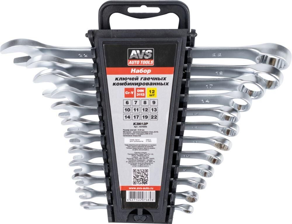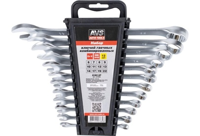 AVS TOOLS Набор ключей гаечных комбинированных на держателе (6-22 мм) (12 предметов) AVS K3N12P