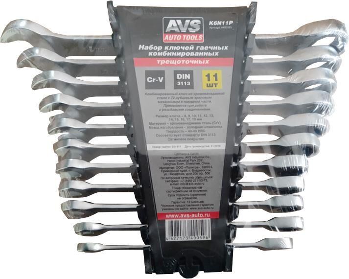 AVS TOOLS Набор ключей гаечных комбинированных трещоточных в пластике (8-19 мм) (11предметов) AVS K6