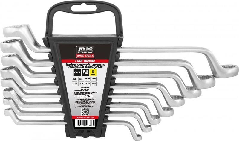AVS TOOLS Набор ключей гаечных накидных изогнутых на держателе (6-22 мм) (8 предметов) AVS K2N8P