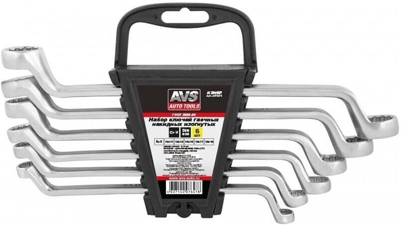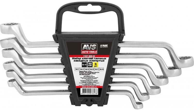 AVS TOOLS Набор ключей гаечных накидных изогнутых на держателе (8-19 мм) (6 предметов) AVS K2N6P