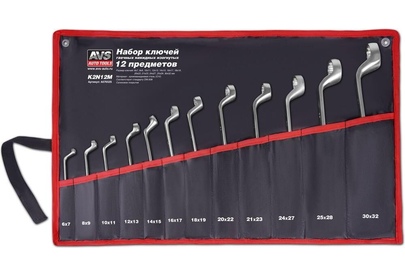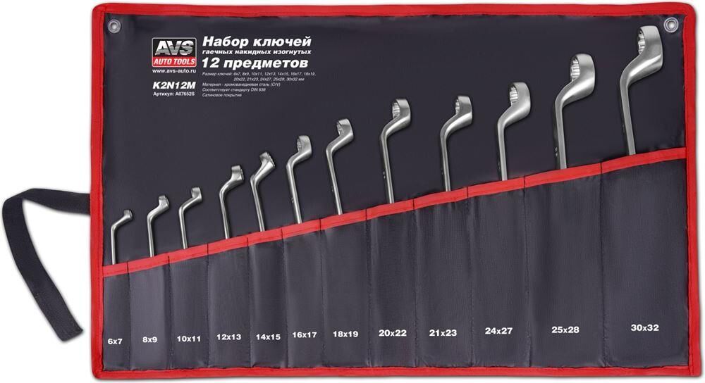 AVS TOOLS Набор ключей гаечных накидных изогнутых в сумке (6-32 мм) (12 предметов) AVS K2N12M