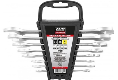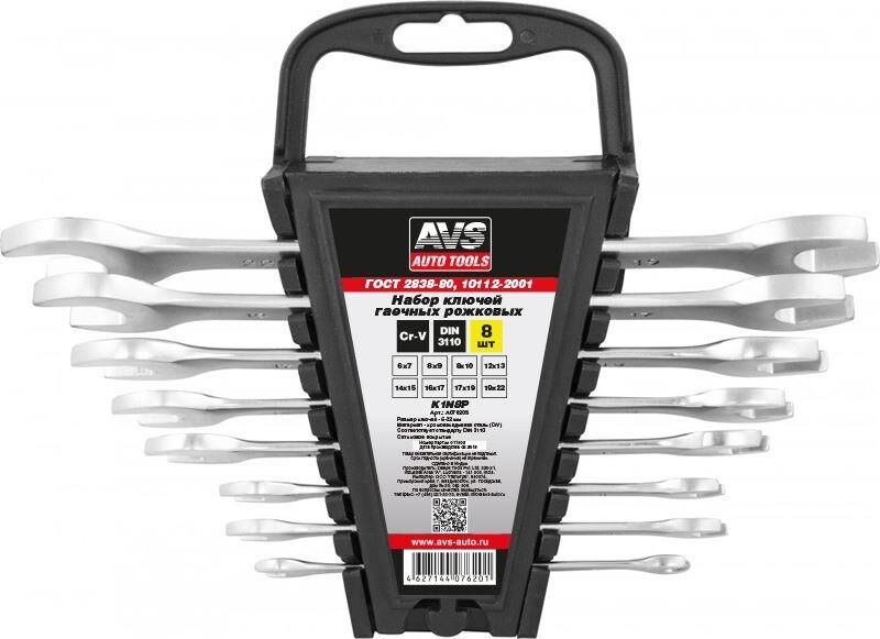 AVS TOOLS Набор ключей гаечных рожковых на держателе (6-22 мм) (8 предметов) AVS K1N8P