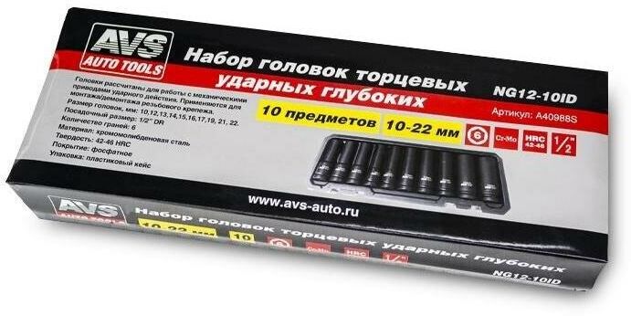 AVS TOOLS торцевых ударных глубоких 1/2"DR (10 - 22 мм) (10 предметов) NG12-10ID