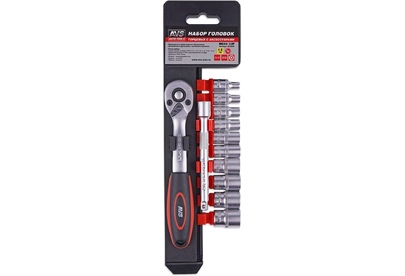 Применяются в сфере ремонта, обслуживания автомобилей и других работ с резьбовым крепежом. Состав набора: Головка торцевая 6-гранная 1/4"DR 4, 5, 6, 7, 8, 9, 10, 11, 12, 13 мм - 10 шт Трещоточная рукоятка 1/4"DR с пластиковой ручкой, 72 зубца - 1 шт Удлинитель 1/4"DR 100 мм - 1шт Материал - хромованадиевая сталь Твердость - 45-48 HRC Покрытие - сатиновое