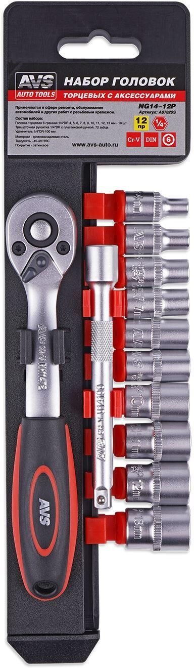 AVS торцевых с аксессуарами 1/4"DR (4-13 мм) (12 предметов) NG14-12P