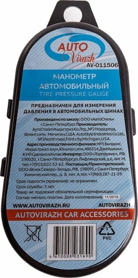 Манометр шинный металл. в пластик.футляре "AUTOVIRAZH"