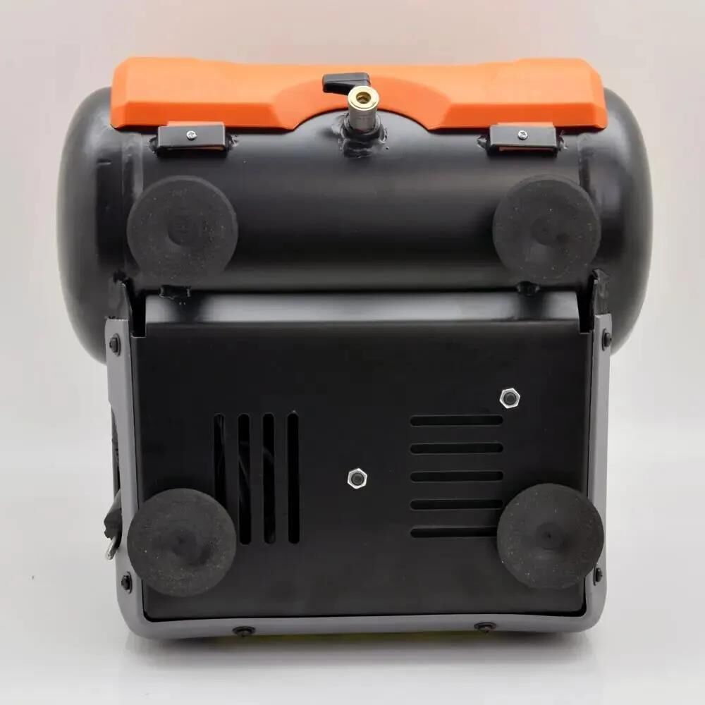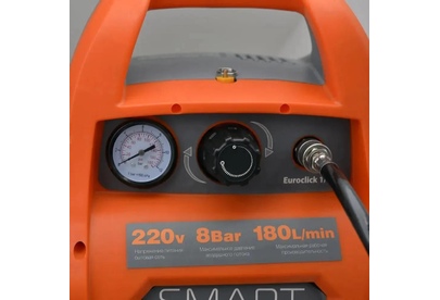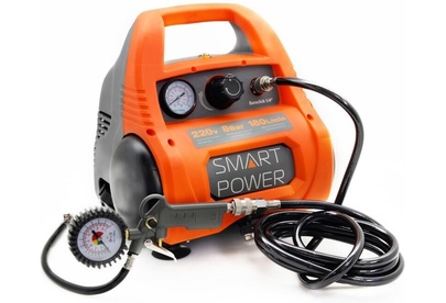 С одноцилиндровой, одноступенчатой компрессорной группой безмасляного типа и прямой передачей. Выполнен с ресивером на 6 л. и предназначен для бытового использования.