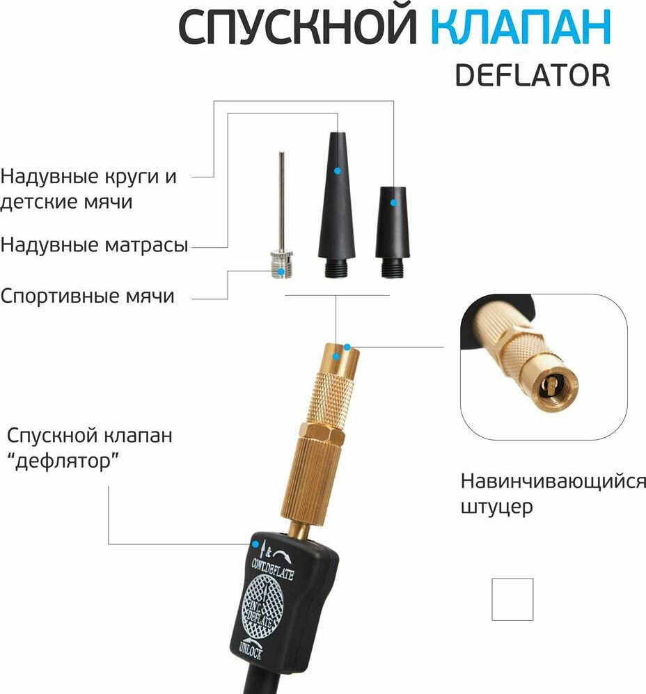 диапазон рабочих температур: -30 ⁰ C +80 ⁰ C, плавкий предохранитель 15 А, спускной клапан - DEFLATOR для регулировки давления