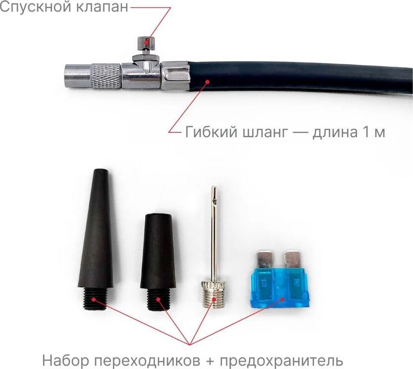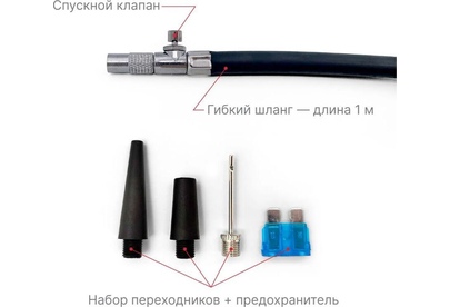 Производительность 35 л/мин Максимальное давление 7 Атм Мощность 156 Вт Напряжение 12 Вольт Максимальный ток потребления 13 А Температура эксплуатации -40…60 С Время непрерывной работы 20 мин Длина кабеля питания 3 м Комплект: Компрессор поршневой со светодиодным фонарём Кабель питания 3 метра Набор переходников Сумка для хранения Руководство по эксплуатации