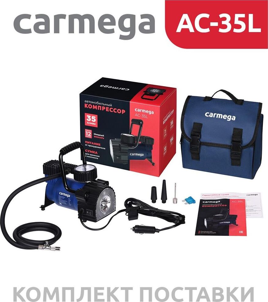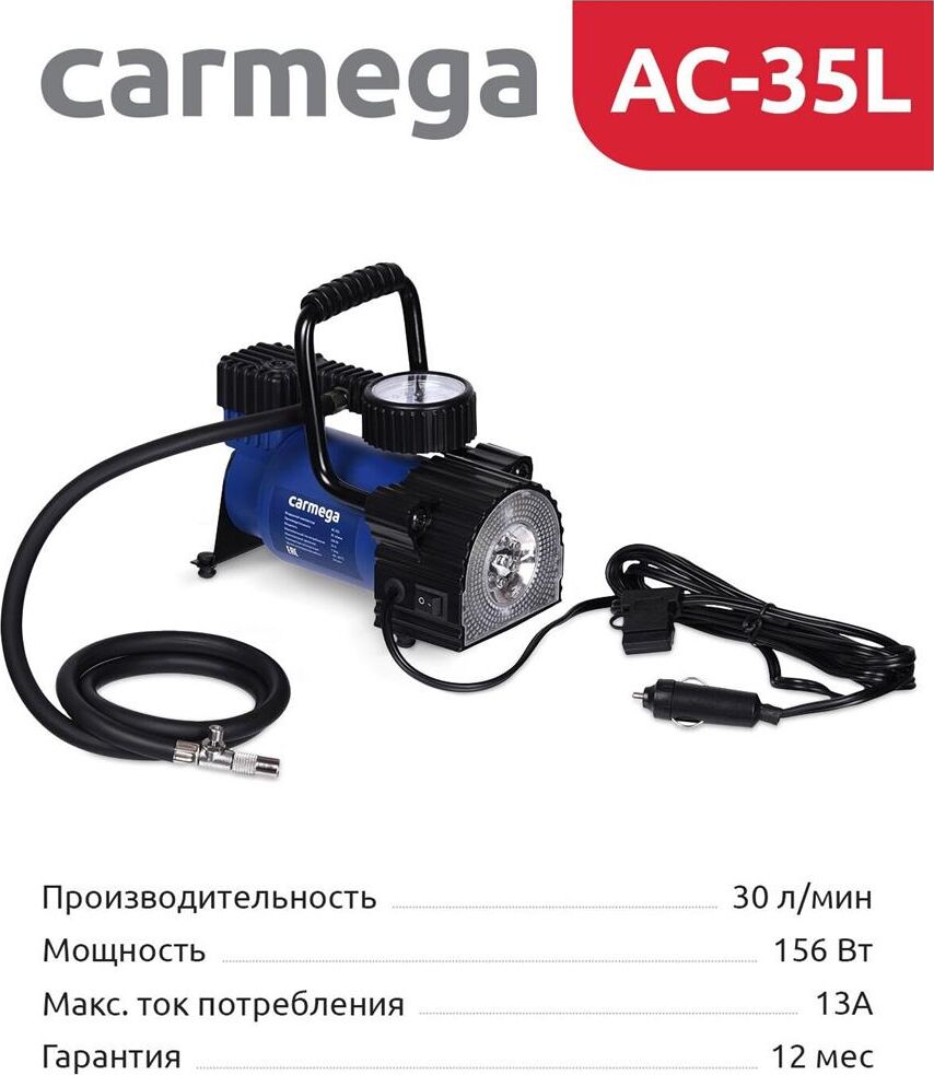 Авто-компрессор CARMEGA CARM-AC-35L Компрессор 35л/мин синий