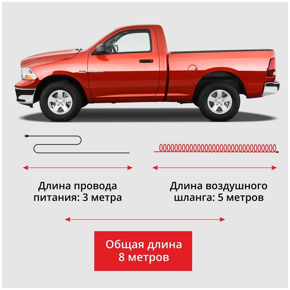 Автомобильный компрессор " Мощность: 240 Вт " Производительность: 70 л/мин " Давление: до 10 атм " Напряжение питания: 12V " Длина провода питания: 3 м " Длина воздушного шланга: 5 м " Защита: плавкий предохранитель " Материал: Сталь " Вес: 3,20 кг " Объем: 0,0091 куб.м " Металлическая поршневая группа " Двухпоршневой " Увеличенная производительность " Высокоточный манометр " Универсальный автомобильный предохранитель в капсуле " ПВХ витой шланг 5м " Питание от АКБ " Время непрерывной работы 30 мин " Сумка для хранения и переноски компрессора " Переходники в комплекте " Съемный органайзер для хранения переходников Автомобильный предохранитель в капсуле защищает устройство от превышения предельно-допустимых токов.