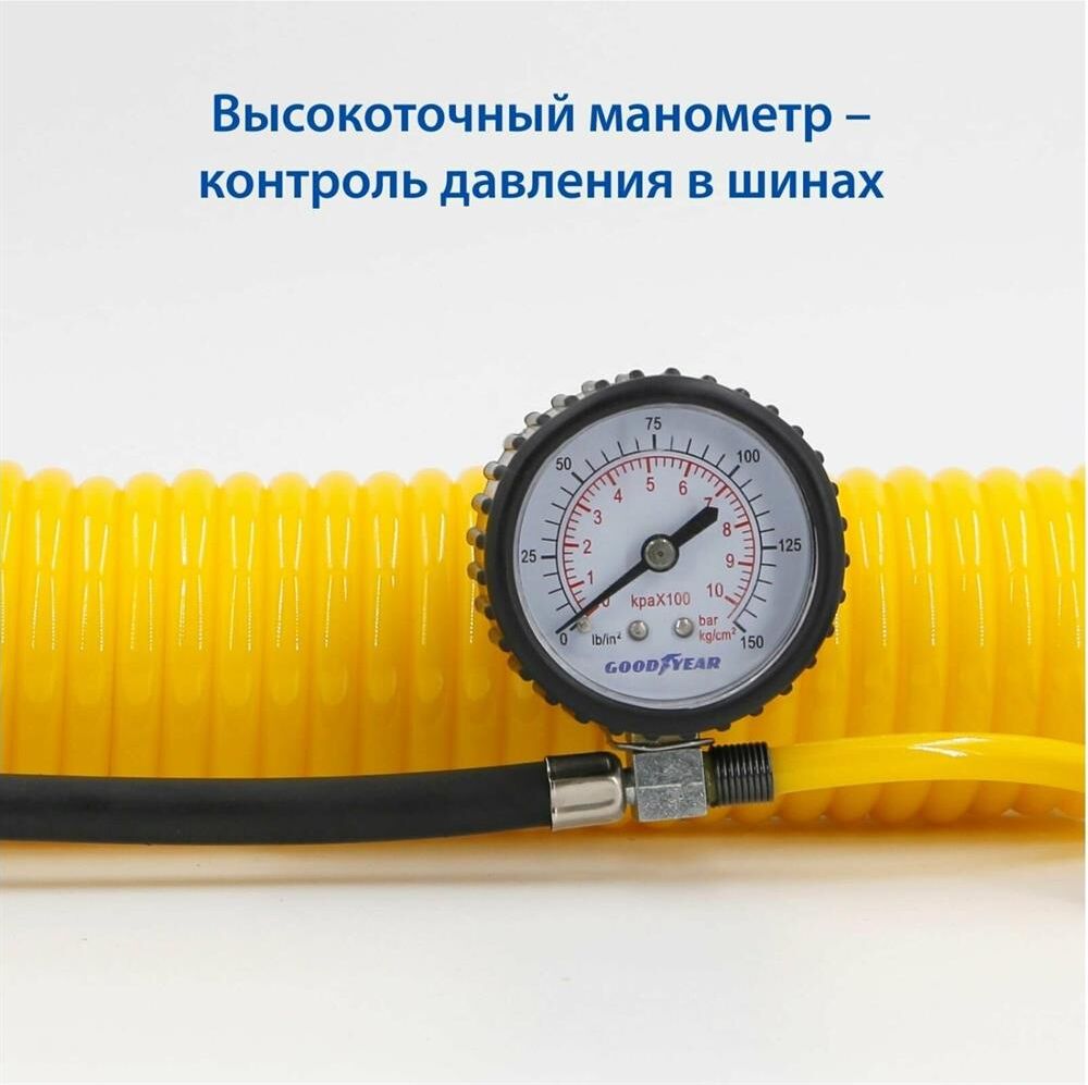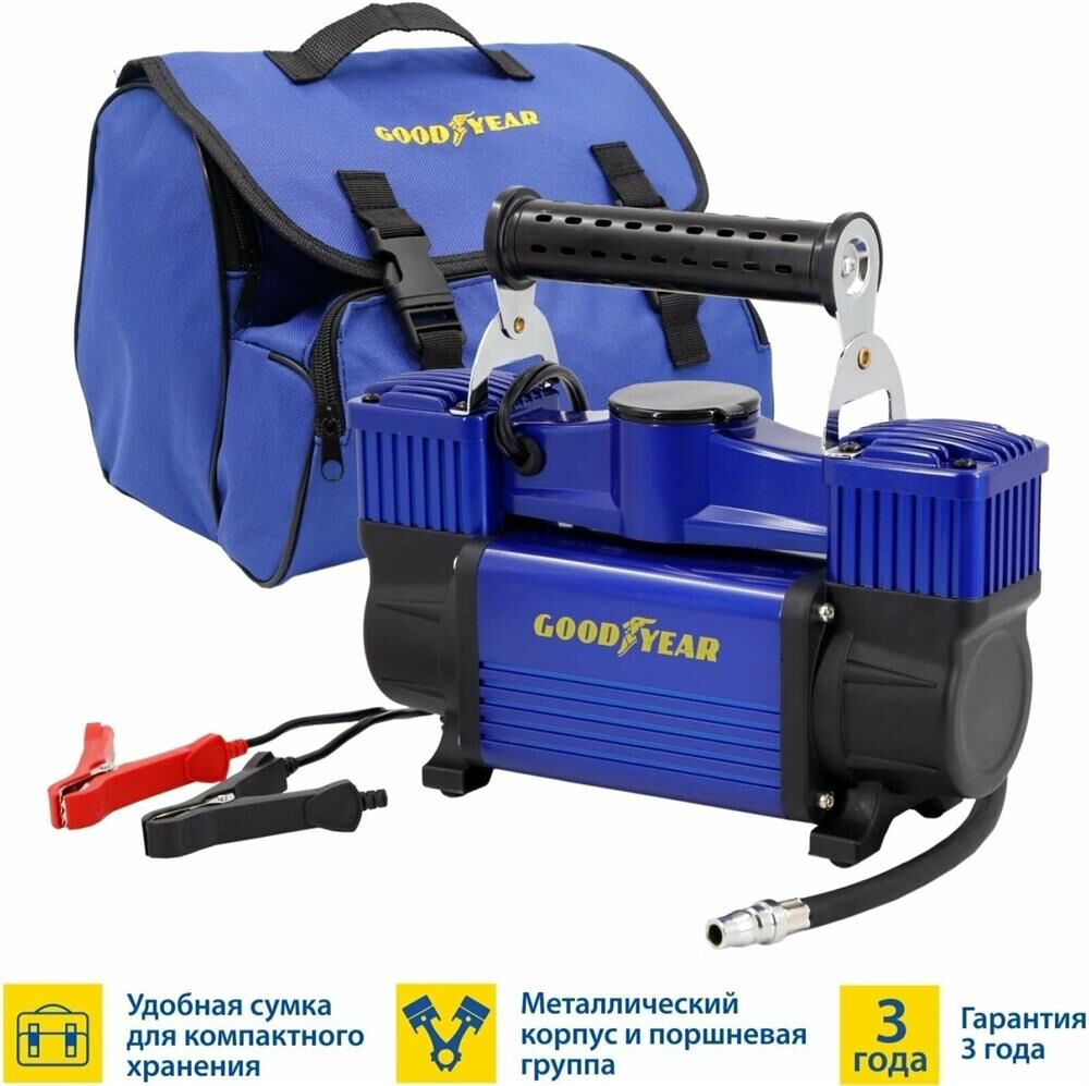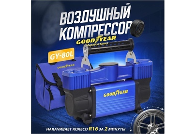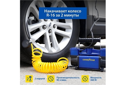 Авто-компрессор GOODYEAR GY000118 компрессор воздушный GY-80L 80 л/мин двухпоршневой питание от АКБ съемный витой шл