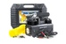 Мощность – 180 Вт. Максимальная сила тока – 20 А. Максимальное давление – до 10 кг/см2 (140PSI/10 Bar) Производительность – до 65 л/мин. Шнур питания – 2,8 м. Воздушный шланг – 5 м. Встроенный LED-фонарь Подключение к клеммам АКБ при помощи металлических зажимов Комплект насадок-переходников – 3 шт. Пластиковый кейс. Цвет- черный. Напряжение питания — 12В. Состав: металл,пластик