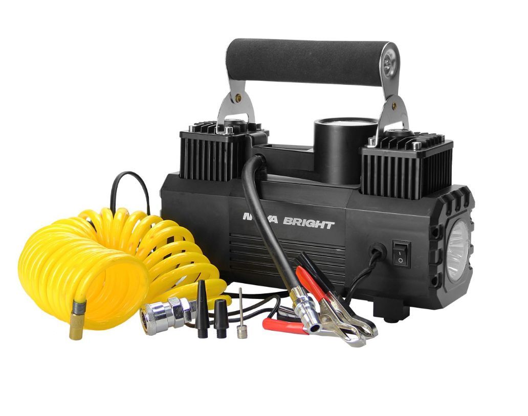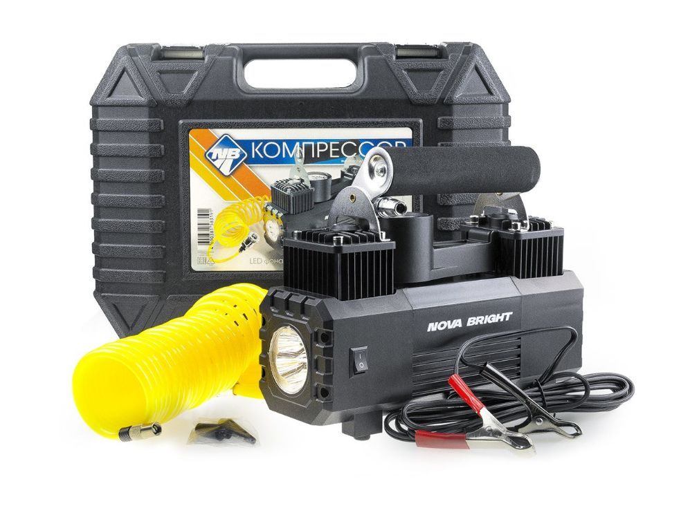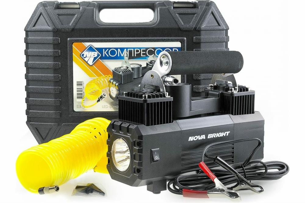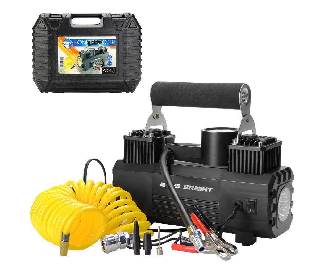 Авто-компрессор NOVA BRIGHT АК-65 Компрессор двухпоршневой, до 65 л/мин.,140 PSI, 12В, металлический корпус, LED-фон