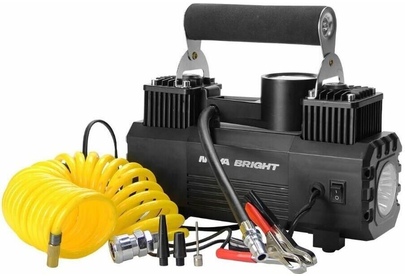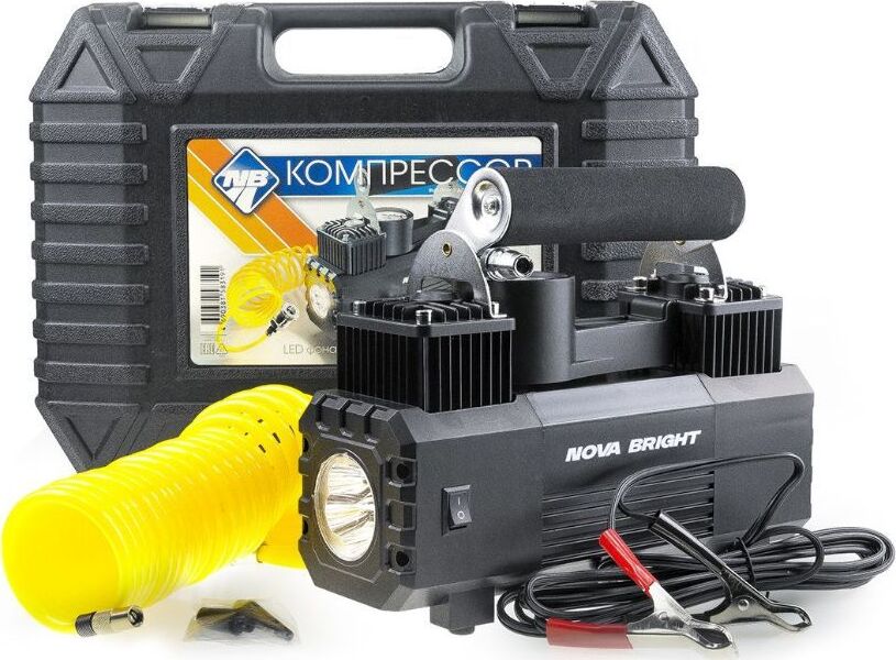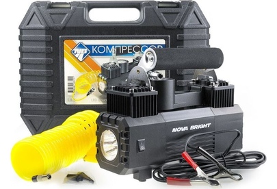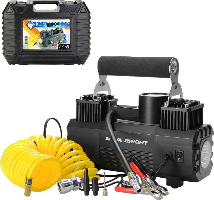 Авто-компрессор NOVA BRIGHT АК-65 Компрессор двухпоршневой, до 65 л/мин.,140 PSI, 12В, металлический корпус, LED-фон