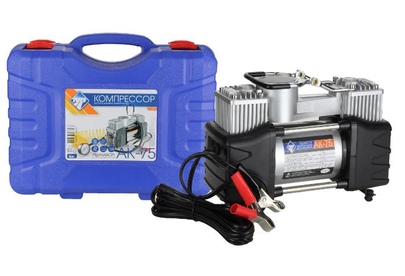 Авто-компрессор NOVA BRIGHT АК-75 двухпоршневой, пластиковый кейс с инструментами 36448