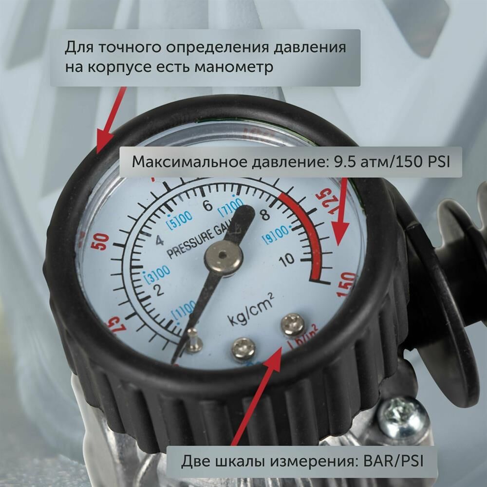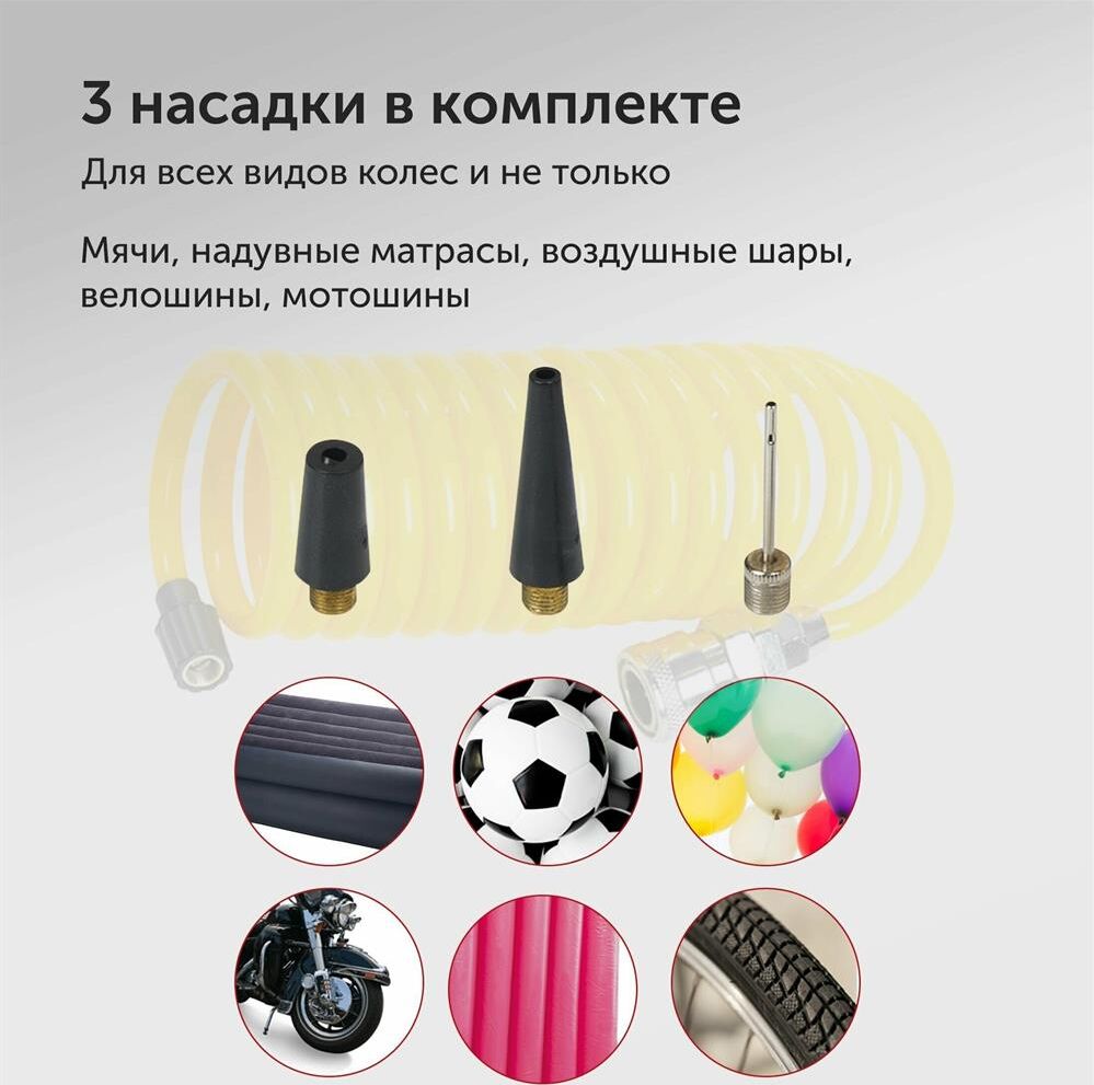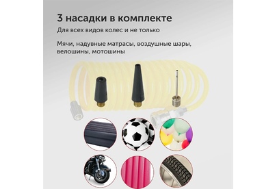 Максимальный ток потребления 15 A. Максимальное давление, атм.9.5. Напряжение питания 12 В. Производительность 35 л/мин. Подключение в прикуриватель. Длина шланга 3 м. Длина провода питания 3 м.
