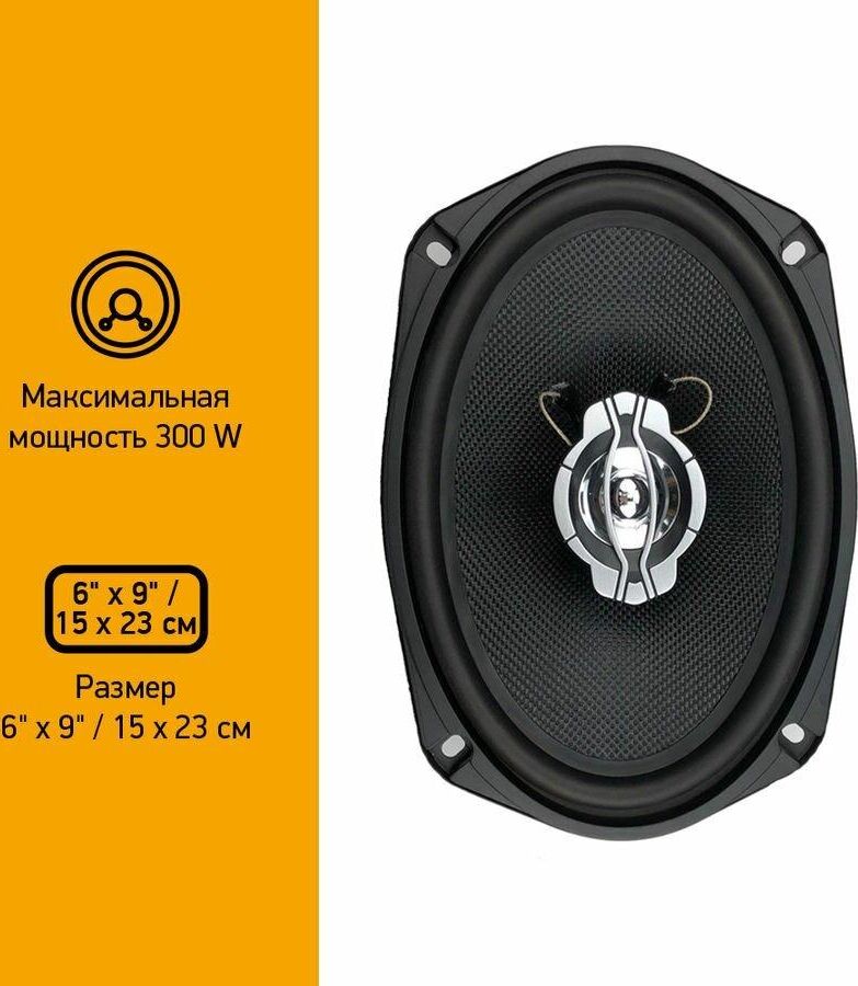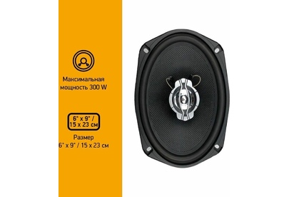 Коаксиальные трехполосные колонки автомобильные. Частотный диапазон 60Гц-20КГц. Форма динамиков овальная. Размер динамика 15x23 см (6x9 дюйм.). Номинальная мощность 140 Вт. Максимальная мощность 300 Вт. Чувствительность 86 дБ. Импеданс 4 Ом. Глубина установки 76 мм.