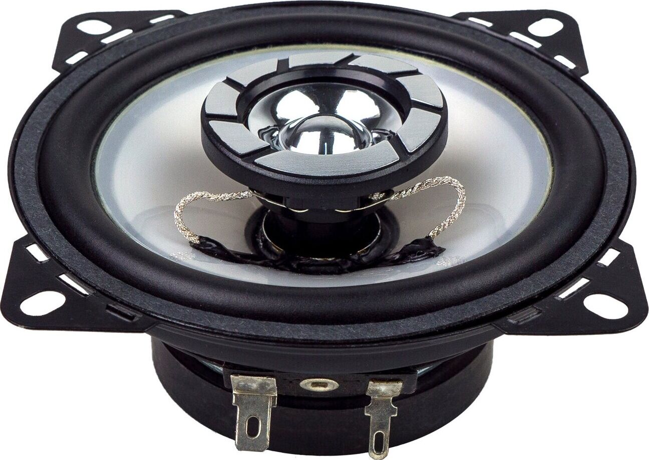 Тип акустической системы коаксиальная. Типоразмер, дюйм. 4. Количество полос 2. Частотный диапазон, Гц 80 - 15000. Чувствительность, дБ. 90. Сопротивление, Ом. 4. Номинальная выходная мощность, Вт. 35. Максимальная выходная мощность, Вт. 120. Установочная глубина, см. 4,2. Установочный размер, см. 9,2. Материал корпуса сталь. Материал подвеса бутилкаучук. Материал диффузора полипропилен. Материал магнита феррит. Комплектация 2 динамика, набор для установки, решетка, гарантийный талон, инструкция на русском языке. Размеры, см. (В х Ш х Г) 5,5x10,2. Размеры в упаковке, см. (В х Ш х Г) 14,4x28x7,1.