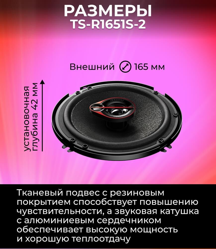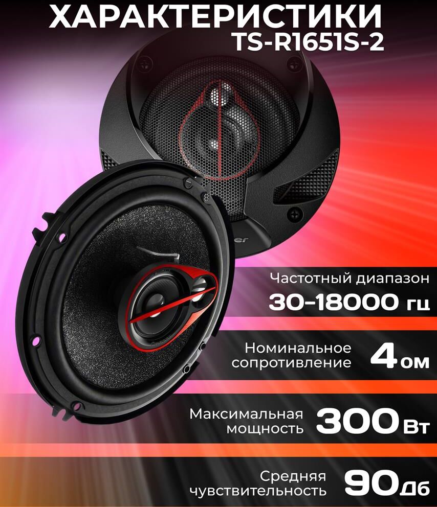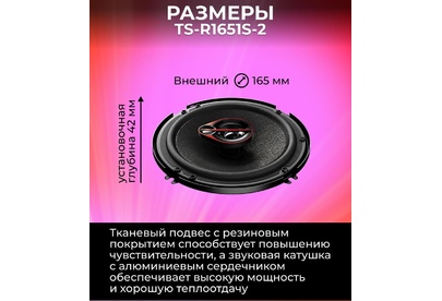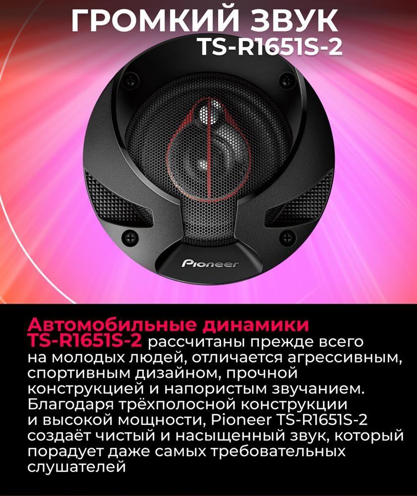Автоакустика PIONEER Колонки автомобильные TS-R1651S-2, 16.5 см (6 1/2 дюйм.), комплект 2 шт