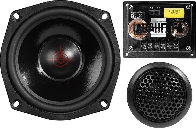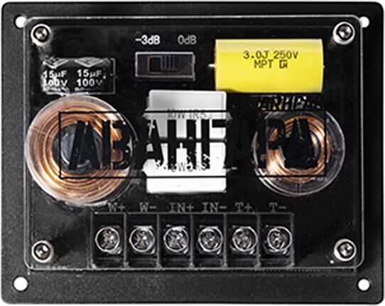 громкоговоритель НЧ (2 шт.), громкоговоритель ВЧ (2 шт.), кроссовер (2 шт.), защитная стенка (2 шт.), монтажный комплект громкоговорителя НЧ, монтажный комплект громкоговорителя ВЧ, инструкция