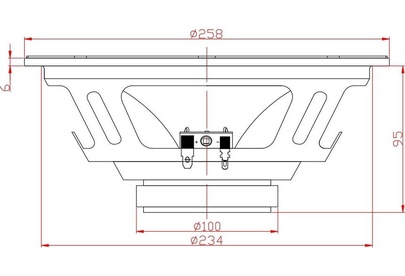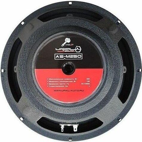Тип Эстрадный широкополосник Размер 10 дюймов (25 см) Диапазон частот 55-10000 Гц Максимальная мощность 300 Вт Номинальная мощность 150 Вт Сопротивление, Ом 4 Чувствительность, дБ 95 Установочная глубина, мм 95 Внешний диаметр, мм 258 Диаметр монтажного отверстия, мм 234 Диаметр магнита, мм 100