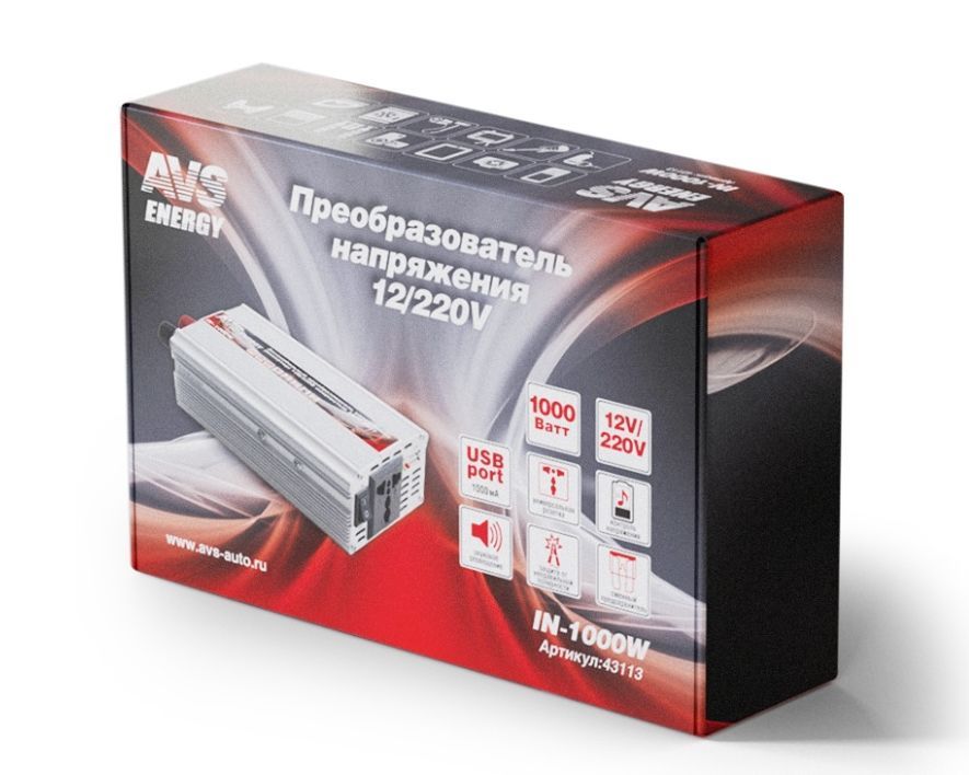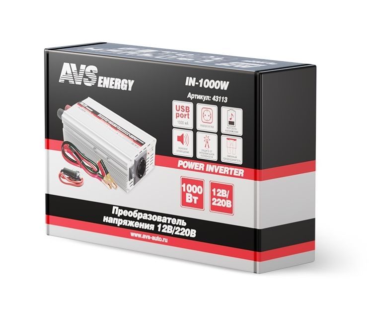Автоинвертор AVS IN-1000W Автомобильный инвертор 12/220V