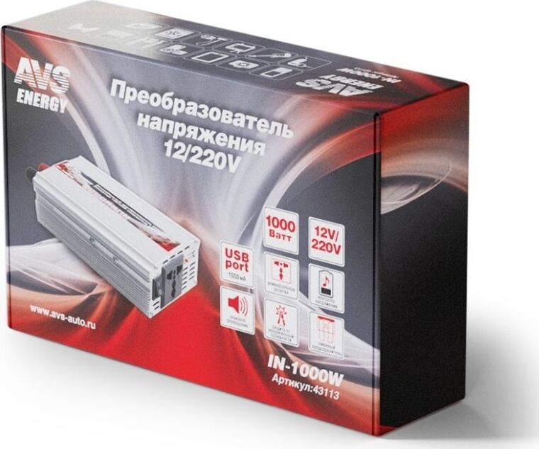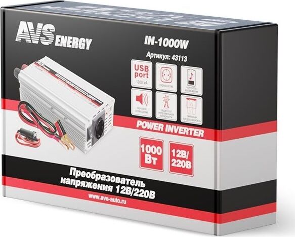 Автоинвертор AVS IN-1000W Автомобильный инвертор 12/220V