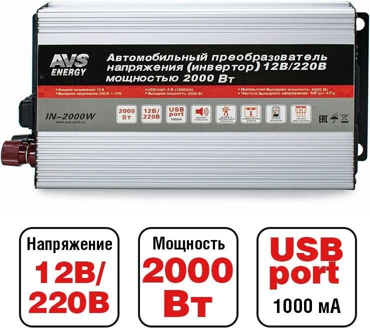 Автоинвертор AVS IN-2000W 12/220V