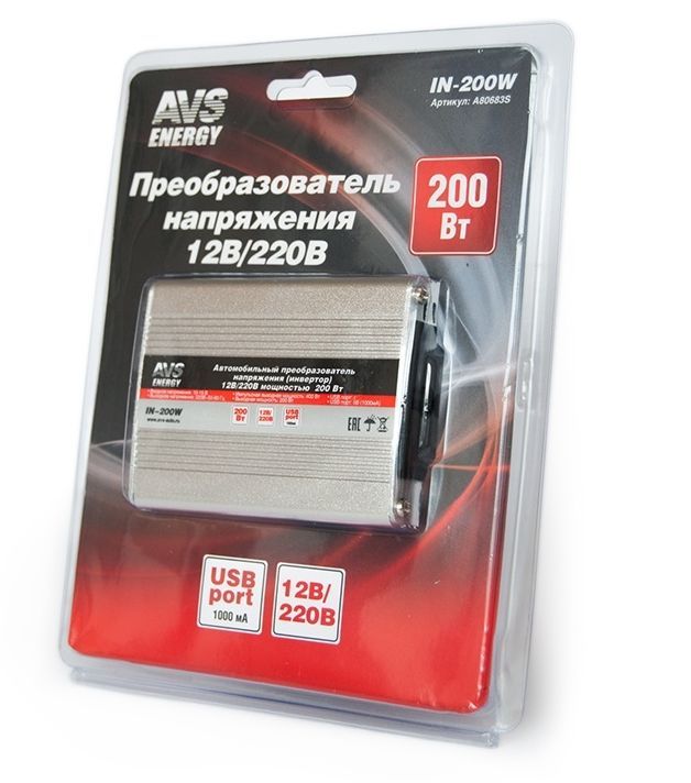 Автоинвертор AVS IN-200W Автомобильный инвертор 12/220V