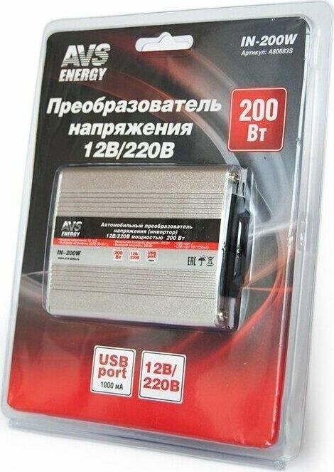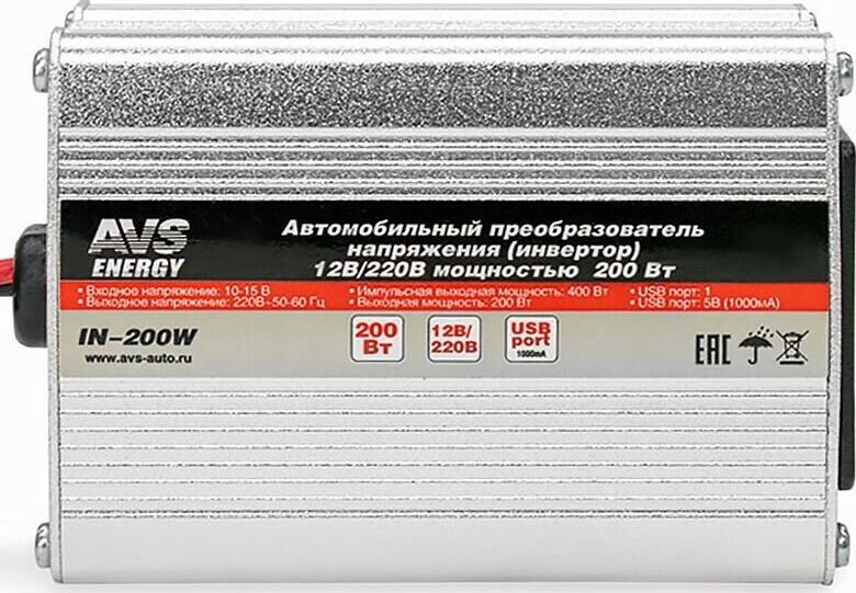Автоинвертор AVS IN-200W Автомобильный инвертор 12/220V