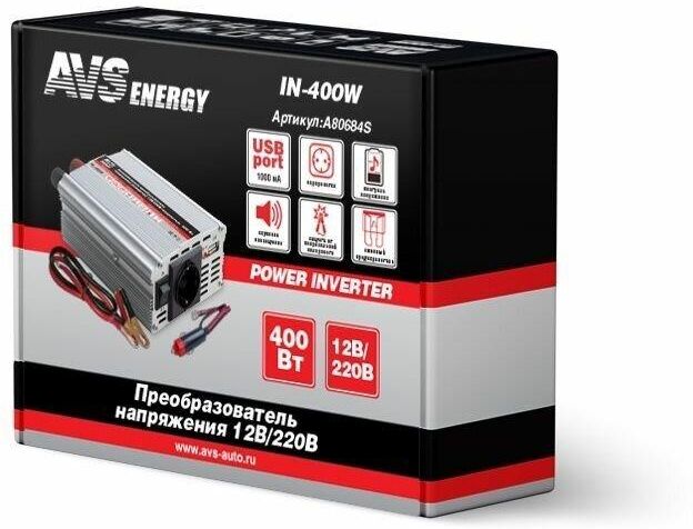 Автоинвертор AVS IN-400W 12/220V