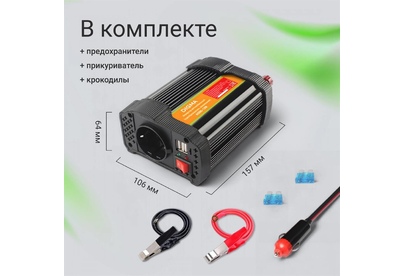 • Выходная мощность: 200W • Входное напряжение: 11-15VDC • Выходное напряжение: 220-240VAC/50Hz • Выходной сигнала: синусоидальная волна • Защита от перегрузки: есть • Защита от короткого замыкания: есть • Защита от перегрева: есть • Соединение: контакты для прикуривателья/ контакты-зажимы аккумулятора • Размер, мм: 158*130*66mm • Вес, гр: 7407gr