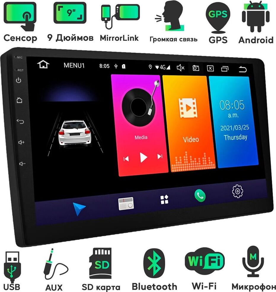 Операционная система: Android 9.0 Процессор: Mediatek MT8321, Cortex A7 4 ядра 1,3ГГц Встроенная память: 32G Оперативная память: DDR3 2Гб Особенности модели GPS: Да Bluetooth: Да Радиус беспроводной связи: 5-7 м Дополнительно: WiFi/GPS/ВТ (ver.4.0) с поддержкой протоколов А2DР, АVRCP Проигрыватель медиафайлов Диапазон воспроизводимых частот: 20 Гц-20 кГц Поддерживаемые форматы аудио: MP3, WMA, WAVE, FLAC, AAC Поддерживаемые форматы видео: WMV, MPEG4, MOV, MPEG1/2 Воспроизведение звука Пиковая мощность: 4х50 Вт Импеданс: 4-8 Ом Эквалайзер: 18-полосный эквалайзер с 7 преднастроенными режимами Радио Чувствительность радио: 28,2мкВ Рабочие частоты: FM 87,5 - 108 МГц, AM 522 - 1620 кГц Промежуточная частота: 10,7 МГц Количество ячеек памяти для сохранения настроенных радиостанций: 30 Соотношение сигнал/шум радио: 48 дБ Диапазон воспроизводимых частот: 20 Гц-15 000 Гц Общие характеристики Типоразмер: 2 DIN Языки: Русский, English, Chinese и др. Размеры: 230х130х50 мм