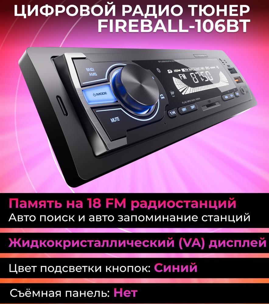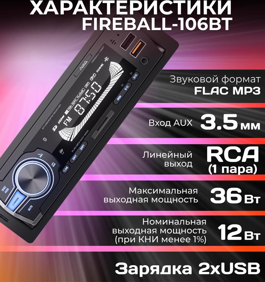 Автомагнитола AURA FIREBALL-106BT USB/SD ресивер