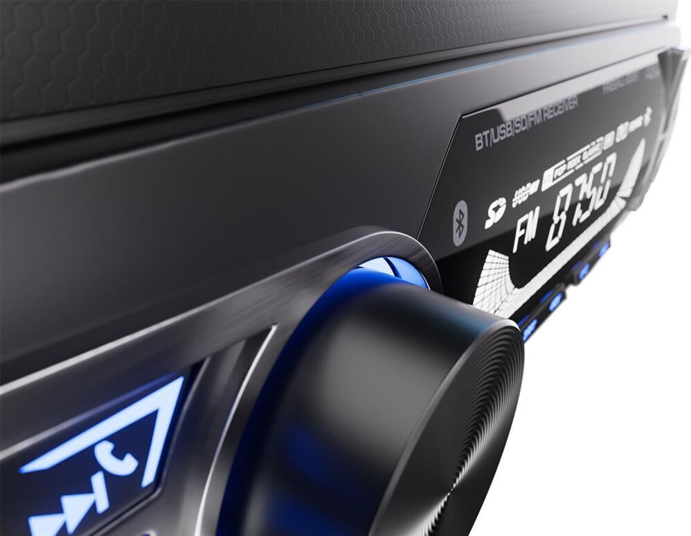Автомобильный BT/USB ресивер Совместимое с iOS и Android приложение для управления всеми функциями ресивера Чтение звуковых форматов FLAC, MP3, WAV, APE, AAC Встроенный Bluetooth-модуль (A2DP) Максимальная выходная мощность: 51Вт Номинальная выходная мощность (при КНИ менее 1%): 16Вт Вход AUX (3,5 мм джек) Линейный выход RCA (2 пары) Предустановки эквалайзера (классическая/ популярная музыка, рок) Цифровой радио-тюнер Память на 18 FM радиостанций 2xUSB / MicroSD ID3 тэги (английский язык) Несъемная панель Синяя подсветка Жидкокристаллический (VA) дисплей