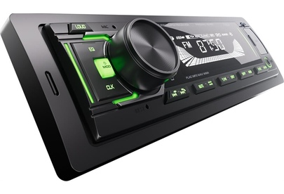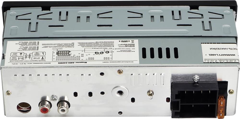Автомобильный BT/USB ресивер Рабочее напряжение 12-24 Вольт Совместимое с iOS и Android приложение для управления всеми функциями ресивера Чтение звуковых форматов FLAC, MP3, WAV, APE, AAC Встроенный Bluetooth-модуль (A2DP) Максимальная выходная мощность: 36Вт Номинальная выходная мощность (при КНИ менее 1%): 10Вт Вход AUX (3,5 мм джек) Линейный выход RCA (1 пара) Предустановки эквалайзера (классическая/ популярная музыка, рок) Цифровой радио-тюнер Память на 18 FM радиостанций USB-порт ID3 тэги (английский язык) Несъемная панель Зеленая подсветка Жидкокристаллический (VA) дисплей ISO разъем (ISO коннектор в комплекте)