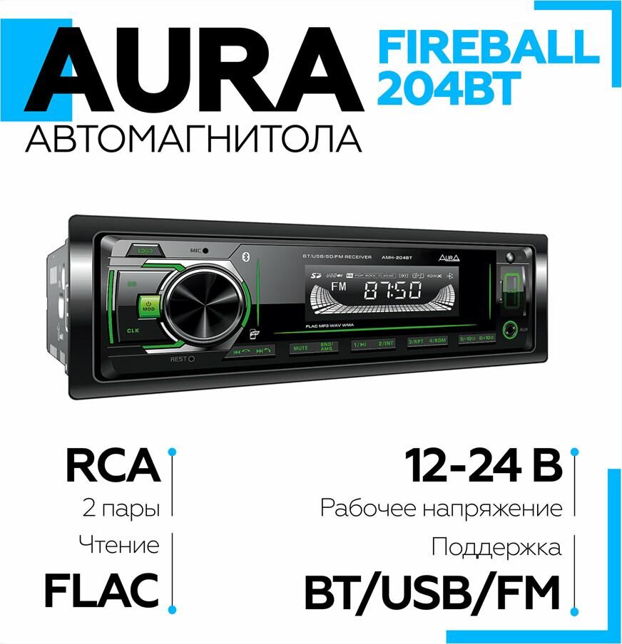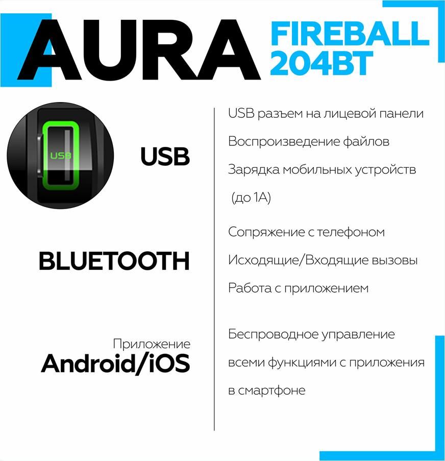 Автомагнитола AURA FIREBALL-204BT USB/SD ресивер