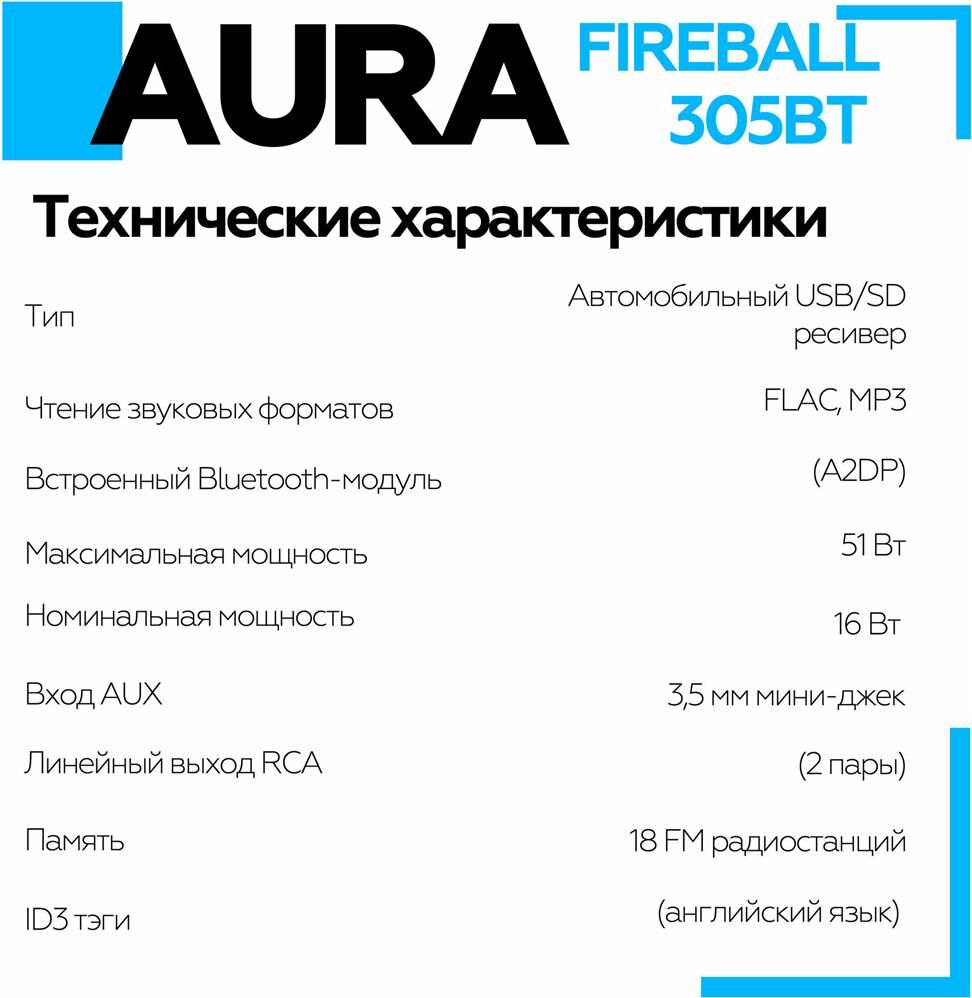 Автомагнитола AURA FIREBALL-305BT USB/SD ресивер
