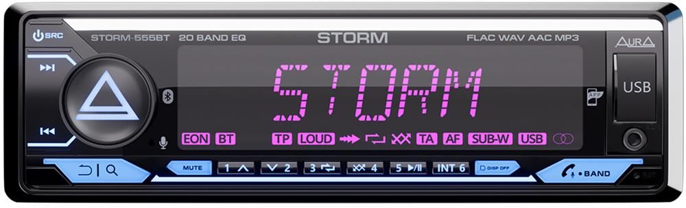 Автомагнитола AURA STORM-555BT USB/SD-ресивер 4*51w FLAC USB BT 3RCA 2-ZONE RGB ДУ