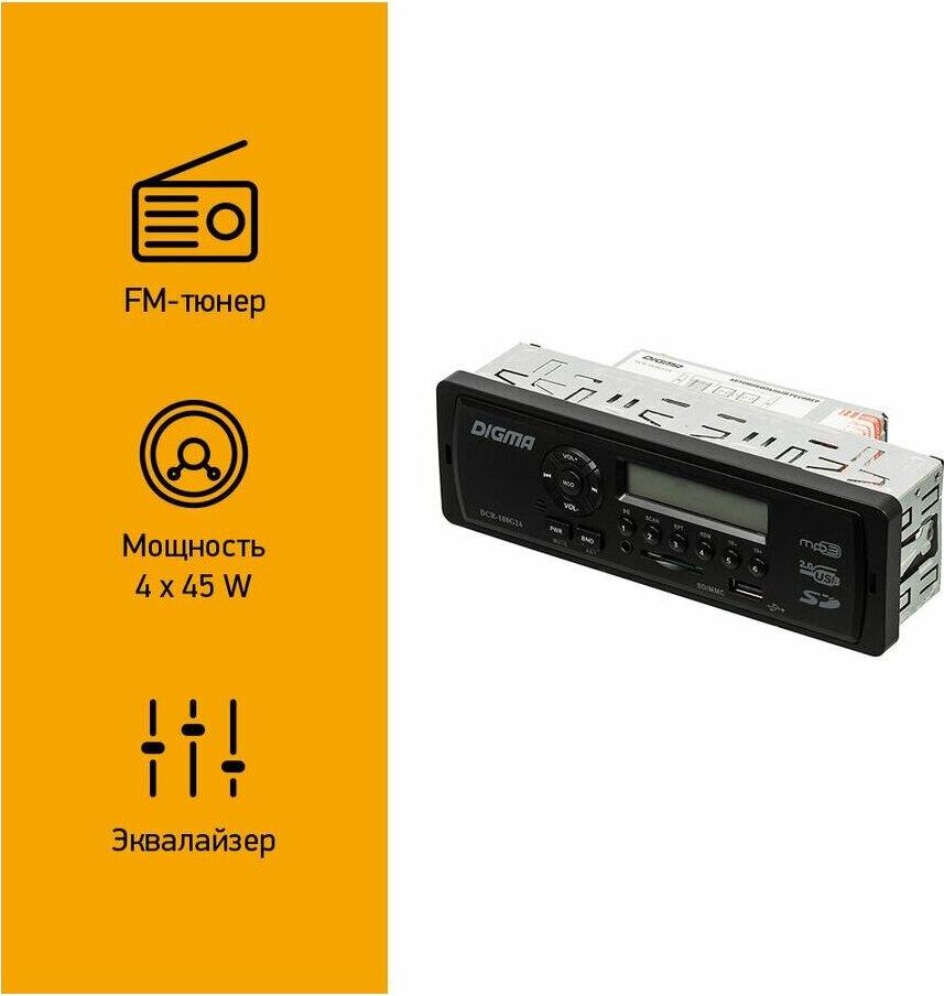 Автомагнитола DIGMA DCR-100G 24 Вольта