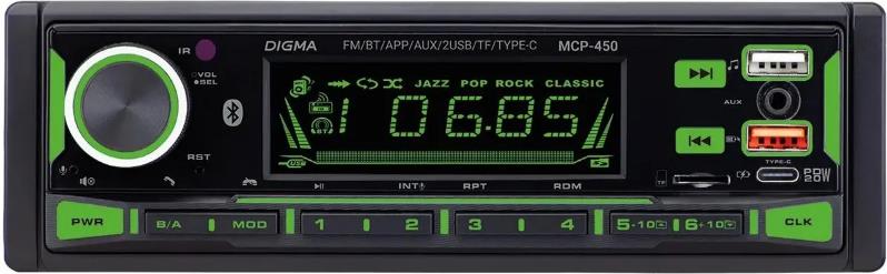 Автомагнитола DIGMA MCP-450 1DIN 4x45Вт BT5.0 USB2.0 AUX 4 ПДУ
