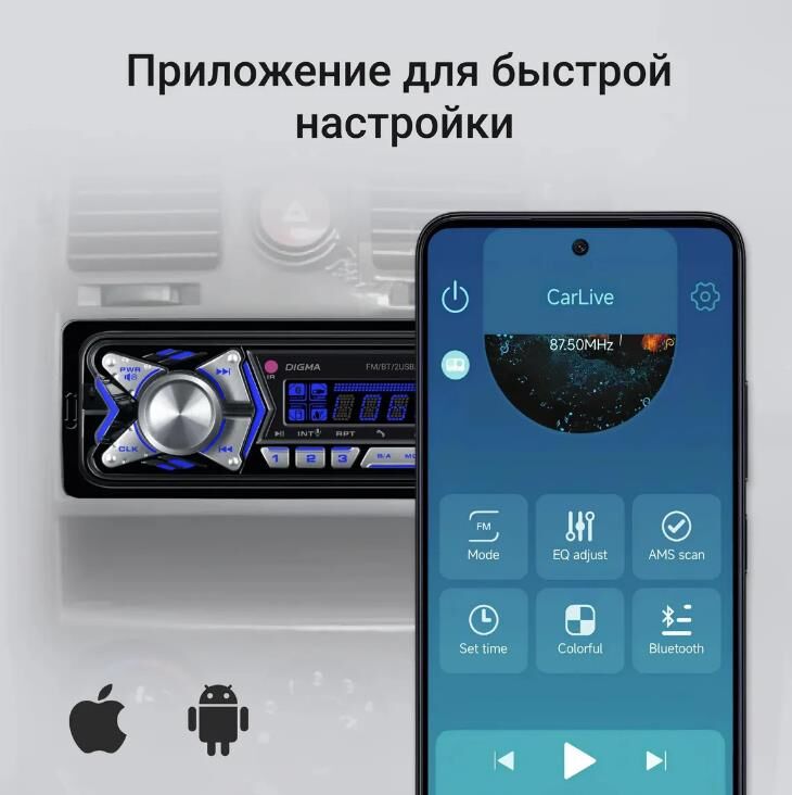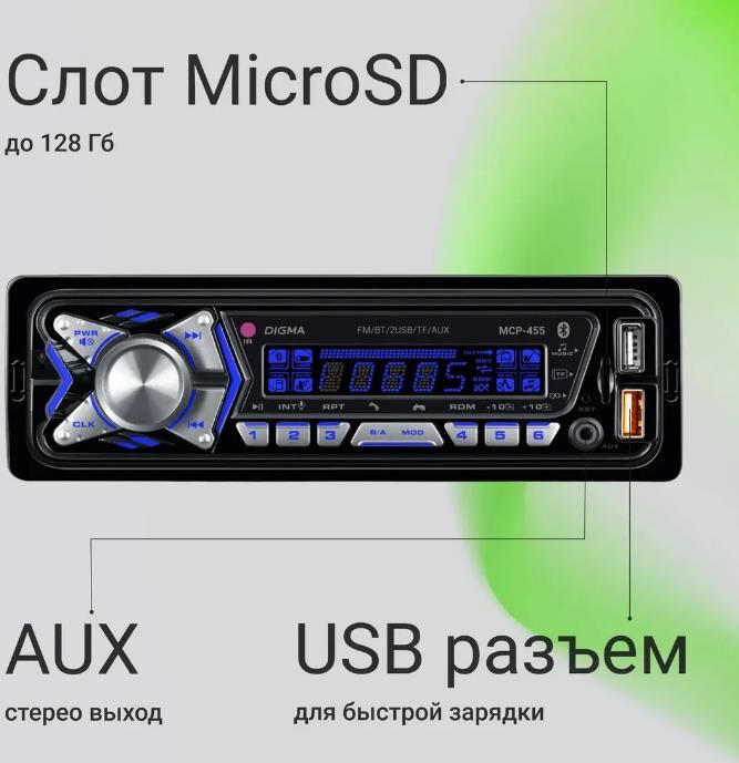 Автомагнитола DIGMA MCP-455 1DIN 4x50Вт BT5.0 USB2.0 AUX 4 ПДУ