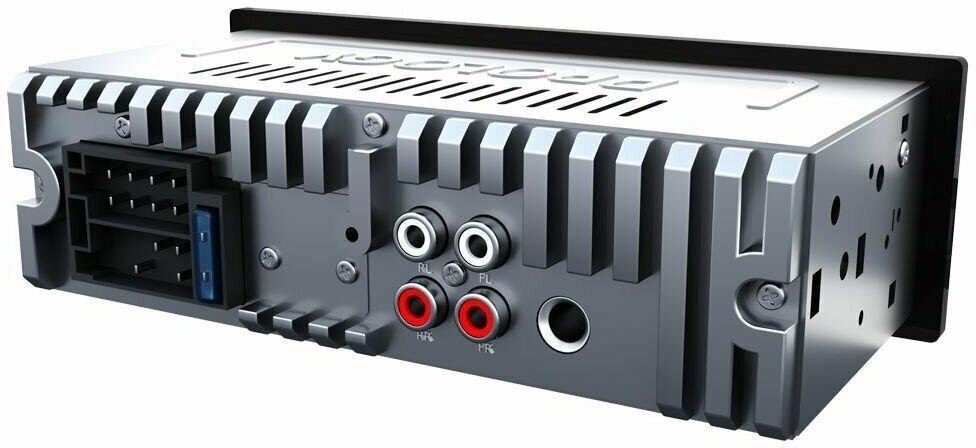 Типоразмер: 1 DIN Привод CD/DVD: Без диска Тип передней панели: Несъемная Цвет подсветки: Зеленый USB интерфейс: Есть SD-слот (microSDHC/microSDXC): Есть Поддерживаются карты (USB накопители) объёмом до: до 128 Гб Поддерживаемые форматы: MP3WMAFLACWAV Поддержка тегов ID3: Есть Поиск по папкам / файлам: Есть Поддержка Bluetooth: ЕстьПрофили A2DP и AVRCP — Воспроизведение музыки / Управление функциями воспроизводящих устройствПрофили HSP и HFP — Управление звонками, Hands-Free Микрофон громкой связи для Bluetooth: ЕстьВстроенный в переднюю панель Управление и настройка со смартфона на Android или iOS: ДА, управление со смартфона на Android при помощи приложения Prology Link Радиотюнер: Есть Число предустановок радиостанций: 18 Мощность (Вт): 4 X 55 Эквалайзер: Есть Входы / Выходы: 4-канальный аудиовыход RCAAUX-вход Mini-Jack 3,5 мм на передней панели Подсоединение по стандарту ISO: Есть Инфракрасный пульт: Есть