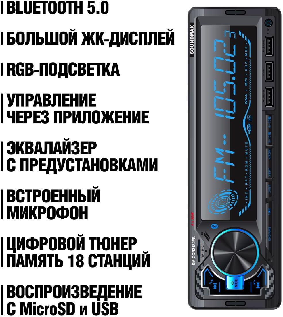 Автомагнитола SOUNDMAX SM-CCR3182FB