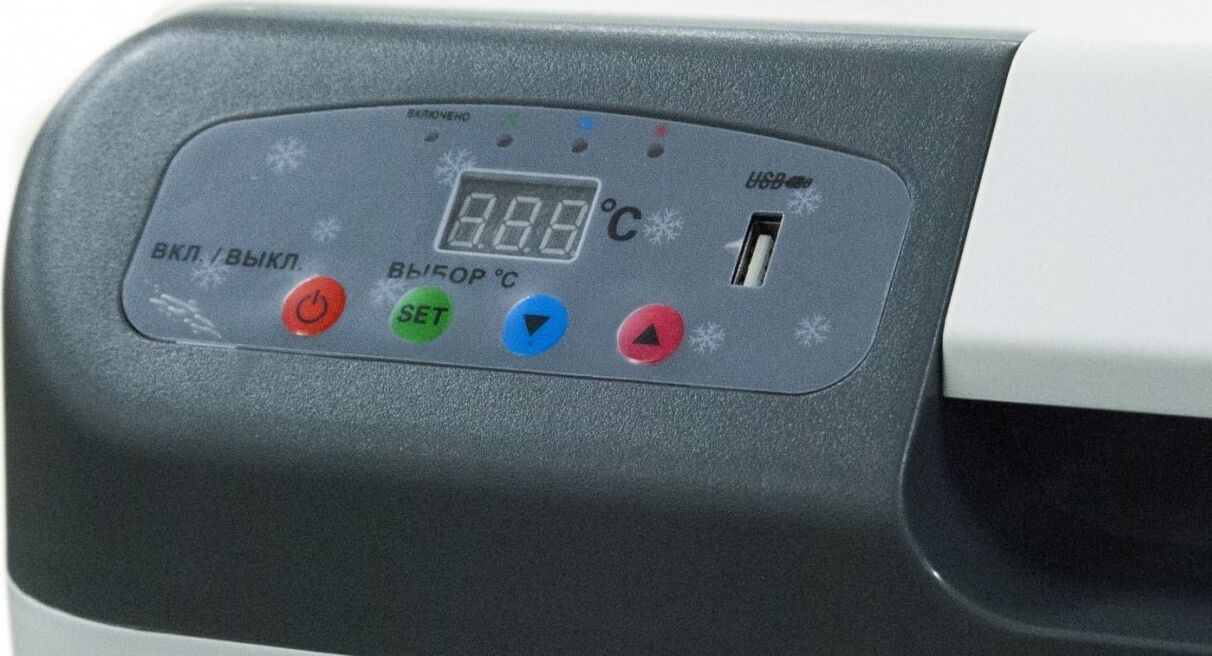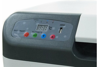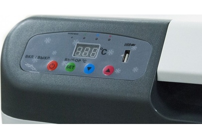 Питание: 12 В/24 В/220 В •Мощность в режиме охлаждения: 78 Вт •Мощность в режиме нагрева: 54 Вт •Емкость: 27 л •Размер упаковки: 540*280*390 мм •Внешний размер (без упаковки): 480*385*350 мм •Размер холодильной камеры: 350*220*290 мм •Вес: 7,6 кг •Работает по принципу эффекта Пельтье •Максимальное охлаждение: 22-25 С от температуры окружающей среды •Минимальная температура: -2 С (при температуре окружающей среды не выше +23 С и непрерывной работе не менее 3-х часов) •Максимальный нагрев: +65 С •LED дисплей
