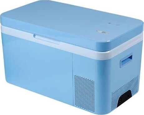 Мобильный холодильник компрессорный. габариты 34,5х58х32,5см. Температура хранения от -18 до +20 °C. Общий объем, 24л. Цвет Голубой. Класс энергоэффективности A++. Управление электронное.Суточный расход электроэнергии, при температуре окружающего воздуха 24°C, 0.186кВтч. Вес, 11,2 кг. Дисплей. Инверторный компрессор.