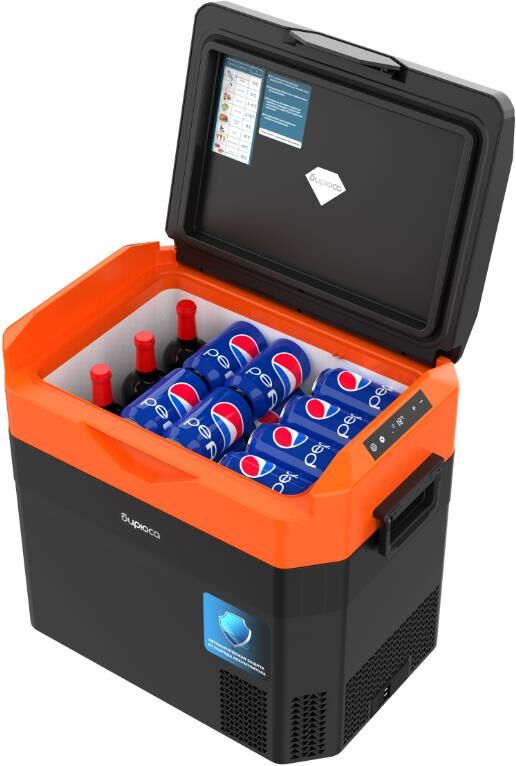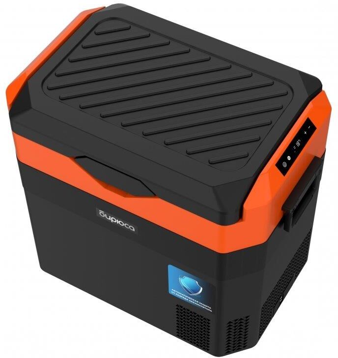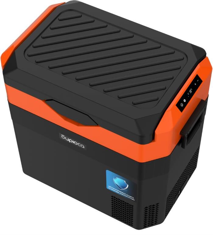 Автохолодильник компрессорный • цвет Оранжево-черный • сенсорный LED дисплей • температура в режиме морозильника от -18 до 0 °C • температура в режиме холодильника от 0 до +15 °C • работа от сети/прикуривателя автомобиля/аккумулятора • температура отображается в градусах Цельсия, Фаренгейта • адаптер 12/24/220В в комплекте • возможность выбора уровня защиты разряда аккумулятора машины • разделочная доска в комплекте • режим быстрого охлаждения • режим экономии энергии • габариты 49,2х55,8х36,2см • объем 38л